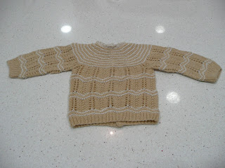 Bueno, este jersey es para un recién nacido que iba a ser de bajo peso espero sorprendentemente al final pesó 3 kilos, así que la mamá se lo ha puesto muy poco tiempo, pero se que lo ha disfrutado al máximo ya que me envió unas fotos del bebe con el puesto.